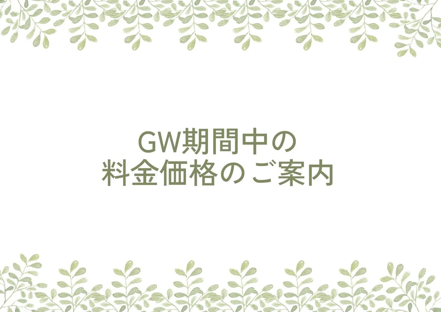 🌿GW期間中の料金価格のご案内です🌿